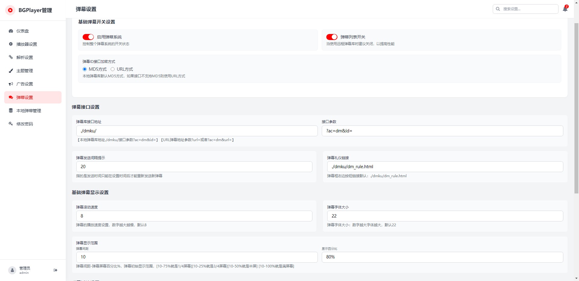 - 弹幕库安装访问/dmku/install,填写数据库信息进行安装
