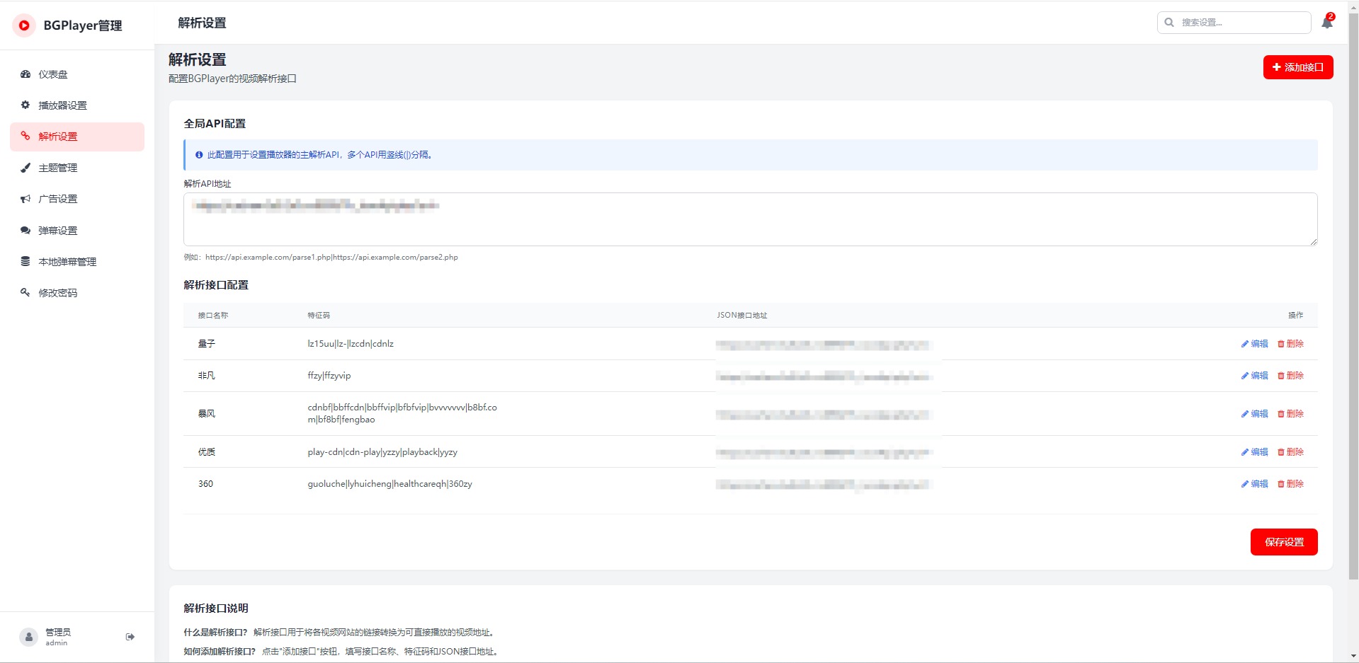 - 如官方视频等无法解析,可登录播放器后台修改检查您的 JSON 是否可以解析以及是否是标准接口